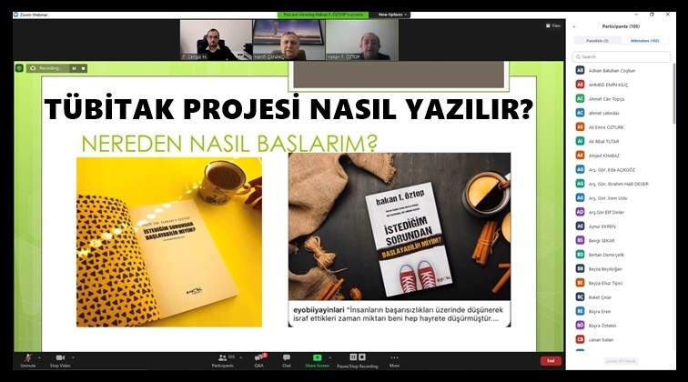 Yoğun katılım ile gerçekleşen “TÜBİTAK’a Yönelik Proje Hazırlama ve Yürütme Stratejileri” webinarı sonunda soruları yanıtlayan Prof. Dr. Hakan Fehmi Öztop, proje sunumunun nasıl olması gerektiğini ve ideal proje hazırlama sürecini de katılımcılarla paylaştı.