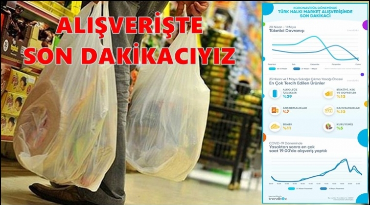 23 Nisan ve 1 Mayıs tarihleri itibarıyla sokağa çıkma yasağı öncesinde en çok alınan ürünler alkolsüz içecekler, kahvaltılık ürünler ve ekmek oldu. Trendbox’ın İstanbul’da 1.000’den fazla noktadan aldığı verilere göre, 20-24 Nisan haftası un listeye giremedi. Yasaktan önceki günler 22 Nisan Çarşamba ve 30 Nisan Perşembe alışverişin en çok tercih edildiği günler oldu.