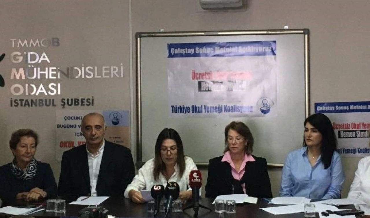 Okul yemeklerinin kamu hizmeti olarak ücretsiz verilmesi için çalışmalar yapan Türkiye Okul Yemeği Koalisyonu, geçen haftalarda düzenlenen “Ücretsiz okul yemeği, hemen şimdi” çalıştayının sonuçlarına ilişkin basın açıklaması yaptı. Dün Gıda Mühendisleri Odası İstanbul Şubesi’nde yapılan açıklamayı koalisyon adına Öğrenci Veli Derneği (Veli-Der) Yönetim Kurulu’ndan Seval Keleş okudu.
