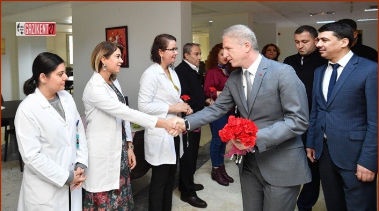 Vali Gül, tören sonrasında Şehitkâmil Devlet Hastanesini ziyaret ederek görev başındaki sağlık çalışanlarının 14 Mart Tıp Bayramı’nı kutladı.
