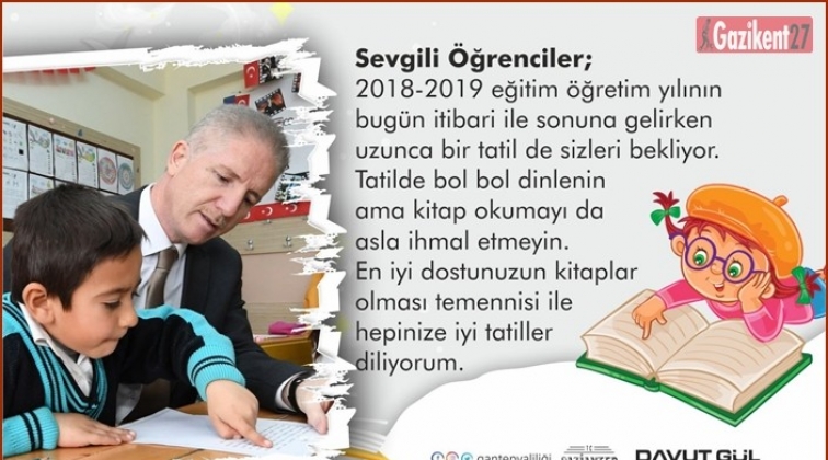 Gaziantep Valisi Davut Gül, 2018-2019 eğitim öğretim yılının sona ermesi dolayısıyla bir mesaj yayımladı.