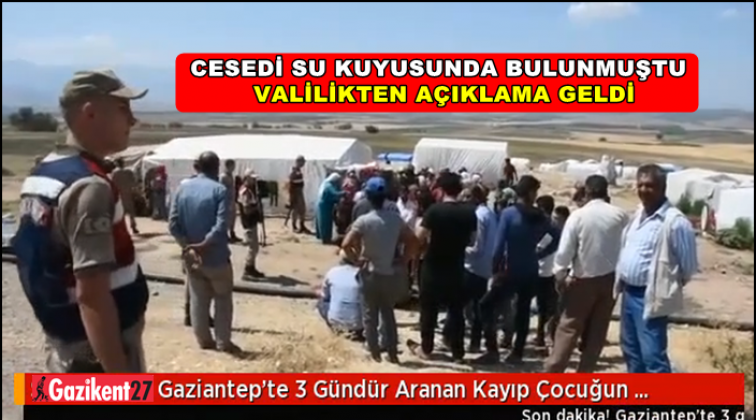 Gaziantep'te 3 gündür aranan ve cesedi su kuyusunda bulunan 9 yaşındaki Suriyeli çocukla ilgili Valilikten açıklama geldi.