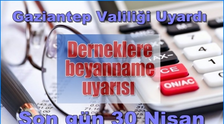 Gaziantep İl Dernekler Müdürlüğü, faaliyette bulunan derneklerin Nisan ayı sonuna kadar vermek zorunda oldukları beyannamelerin 30 Nisan tarihine kadar verilmesi gerektiğini duyurdu.