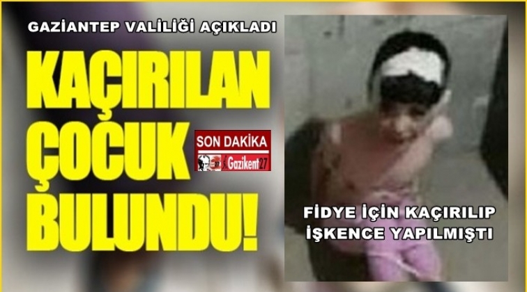 Gaziantep'te fidye için kaçırılan Suriye uyruklu 6 yaşındaki Yemen Kasım polisin operasyonuylu kurtarılarak ailesine teslim edildi. Çocuğu kaçıran Suriyeli iki kişi ise gözaltına alındı.