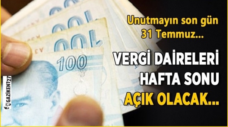 Bu nedenle, 7143 sayılı Kanuna ilişkin başvuruların alınması ve diğer taksit ödemeleri sırasında vergi dairelerinde meydana gelmesi muhtemel sıkışıklığın önlenmesi ve mükelleflere kolaylık sağlanması amacıyla 28 Temmuz 2018 Cumartesi ve 29 Temmuz 2018 Pazar günü saat 17.00′ a kadar tüm vergi daireleri açık bulundurulacaktır” dendi.