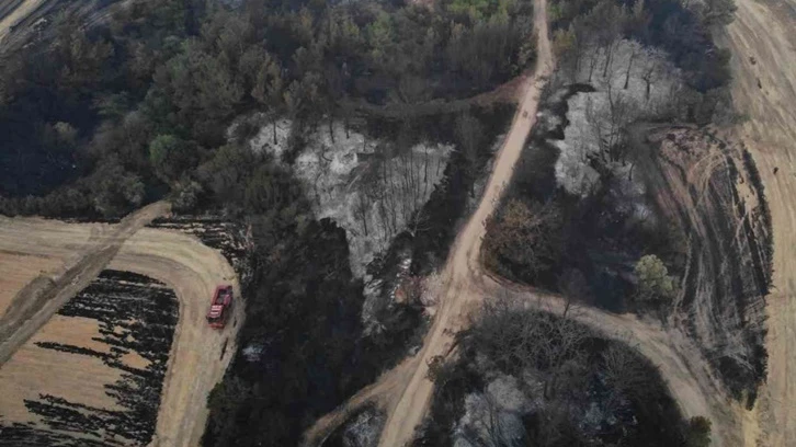 Çanakkale’de orman yangınında hasarın boyutu gün ağarınca ortaya çıktı. Yanan alanlar havadan görüntülendi.