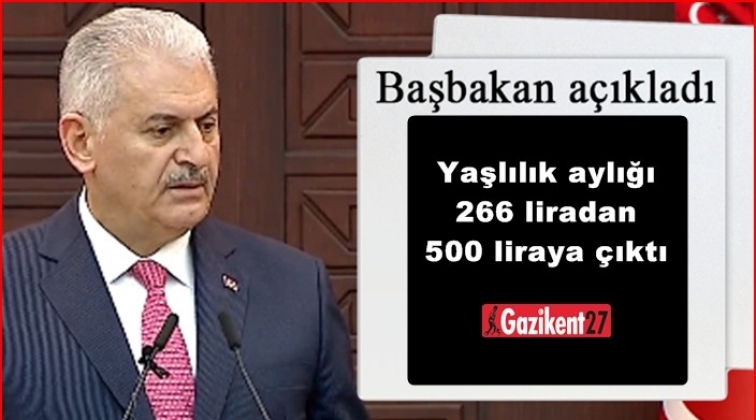 Bakanlar Kurulu toplantısı sonrası konuşan Başbakan Binali Yıldırım, 65 yaş ve üzerine ödenen yaşlılık aylığının 266 liradan 500 liraya çıkarılacağını söyledi.