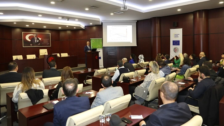 Bölgedeki işletmelerin sürdürülebilirlik raporlaması çalışmalarını, ulusal ve uluslararası raporlama standartlarını ve denetim gerekliliklerini desteklemek amacıyla düzenlenen toplantıda, Sürdürülebilirlik Raporlaması ve Denetimi, Türkiye Sürdürülebilirlik Raporlama Standartları (TSRS) 1 ve TSRS 2 raporlama gereklilikleriyle ilgili detaylar Kamu Gözetimi, Muhasebe ve Denetim Standartları Kurumu yetkilileri tarafından anlatıldı.