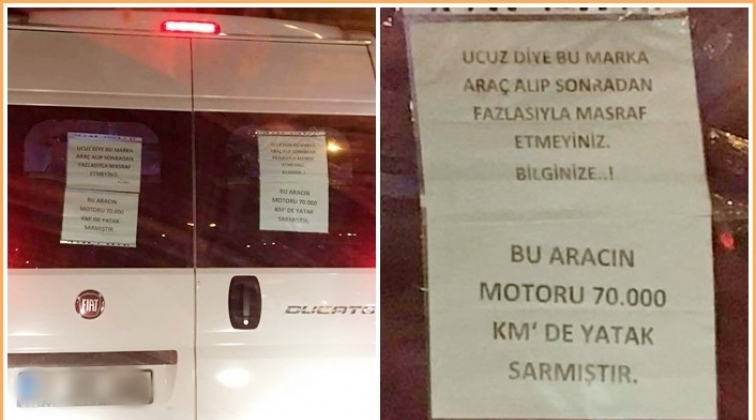 Gaziantep'te yeni satın aldığı otomobili arıza yapan bir sürücü, aracının arkasına astığı yazıyla hem otobobil markasına isyanını dile getirdi hem de vatandaşları uyardı.