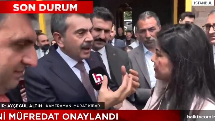 Yedikule’de bir etkinliğe katılan Milli Eğitim Bakanı Yusuf Tekin, kabul edilen yeni müfredatla ilgili soru soran Halk TV muhabirinin mikrofonunu eliyle uzaklaştırdı.