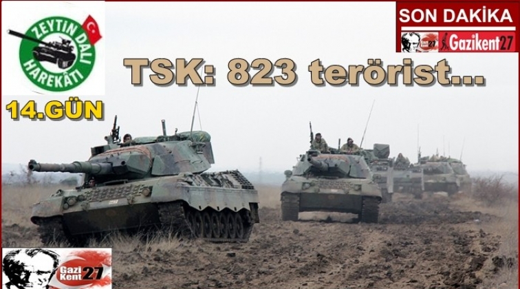 Genelkurmay Başkanlığı, Zeytin Dalı Harekatı'nın 14 gününde yeni bir açıklama yaptı. Açıklamada harekatın başından beri etkisiz hale getirilen terörist sayısının 823'e yükseldiği açıklandı.