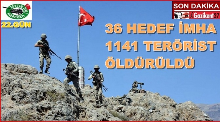 Zeytin Dalı Harekatı'nın 22. gününde, 79 terörist etkisiz hale getirildi. Harekatın başından itibaren etkisiz hale getirilen terörist sayısı 1141’e yükseldi.