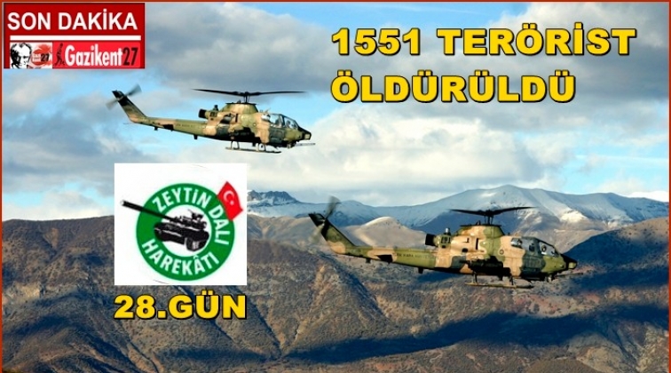 Türk Silahlı Kuvvetleri, Zeytin Dalı Operasyonu'nun 28'inci gününde öldürülen terörist sayısının 1551'e yükseldiğini açıkladı.