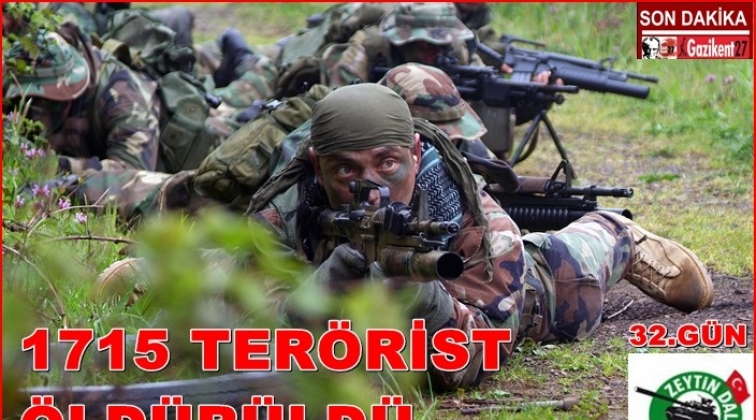 Genelkurmay Başkanlığı Afrin'de düzenlenen Zeytin Dalı Harekatının 32. gününde etkisiz hale getirilen terörist sayısının 1715'e yükseldiğini açıkladı.