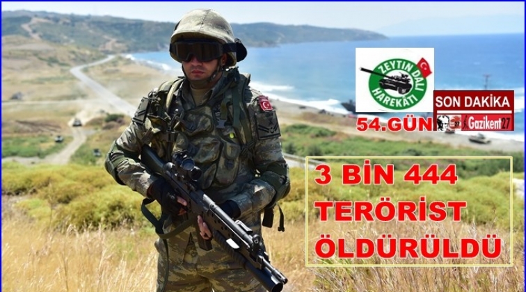 Türk Silahlı Kuvvetleri (TSK) Afrin'de yürütülen Zeytin Dalı Harekâtı'nın 54. gününde etkisiz hale getirilen terörist sayısının 3 bin 444 olduğunu söyledi.