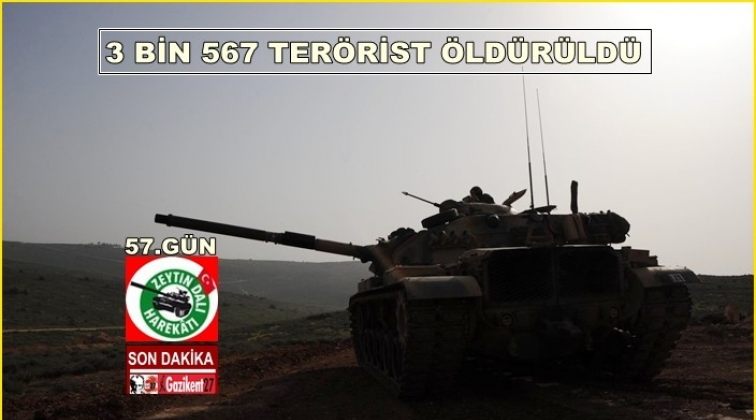 Türk Silahlı Kuvvetleri (TSK) Afrin'de başarılya yürütülen Zeytin Dalı Harekâtı'nda etkisiz hale getirilen terörist sayısının 3 bin 567'ya yükseldiğini açıkladı.