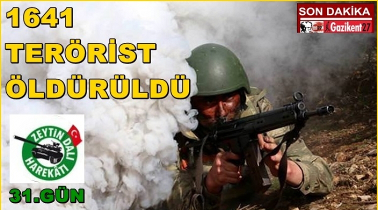 Türk Silahlı Kuvvetleri'nce, Zeytin Dalı Harekatı'nın başlangıcından bu yana 1641 teröristin etkisiz hale getirildiği bildirildi.