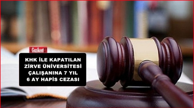 Gaziantep'te, KHK ile kapatılan Zirve Üniversitesi'nin eski çalışanı, Fetö üyesi olmak suçundan 7 yıl 6 ay hapis cezasına çarptırıldı.