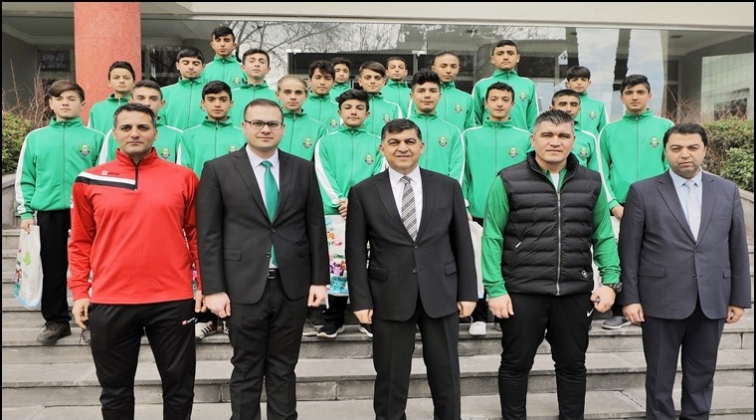 Şehitkamil Belediye Spor Kulübü U14 Erkek Futbol Takımı sporcuları, Rıdvan Fadıloğlu’nu makamında ziyaret etti.