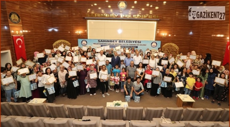 Şahinbey Belediyesi ve İŞKUR'un müşterek düzenlediği meslek edindirme kurslarına katılan 180 kursiyer daha düzenlenen törenle sertifikalarını aldı.