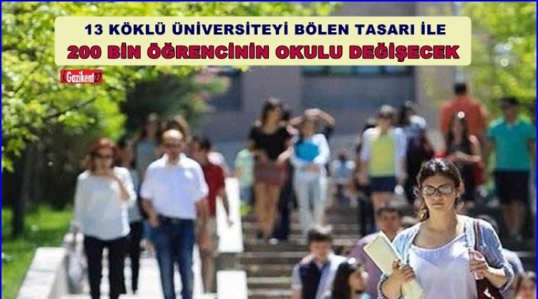 13 köklü üniversiteyi bölen, 20 yeni üniversite kurulmasını içeren tasarı önümüzdeki hafta TBMM Genel Kurulu’na geliyor. Tasarıya göre, 200 bin öğrencinin okulu değişecek.