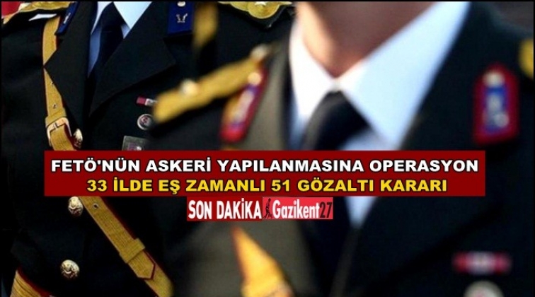 Gaziantep Emniyet Müdürlüğü Kaçakçılık ve Organize Şubesi ekipleri, Adana merkezli, FETÖ/PDY'nin askeri yapılanmasına yönelik 34 ilde 41'i aktif görevde 51 şüpheli hakkında yakalama kararı verilmesinin ardından önceden belirlenen bir adrese operasyon düzenledi.