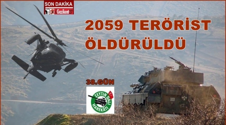 Türk Silahlı Kuvvetleri (TSK) Afrin'de yürütülen Zeytin Dalı Harekâtı kapsamında etkisiz hale getirilen terörist sayısının 2059 olduğunu açıkladı.