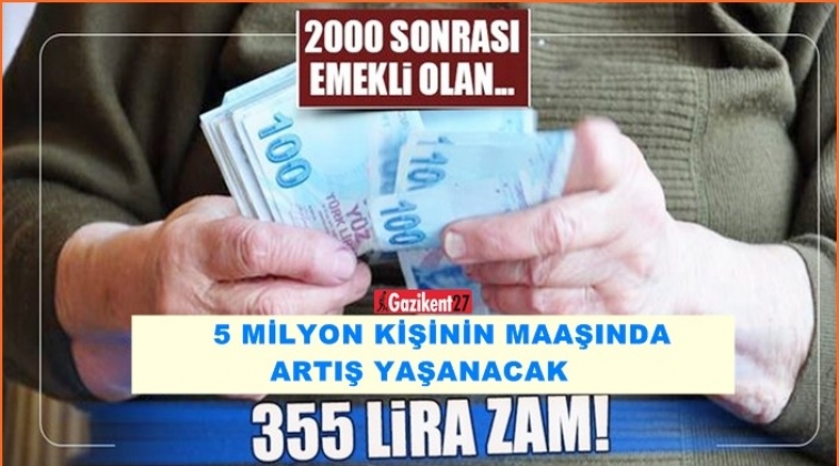 Türkiye Emekliler Derneği'nin verdiği bilgiye göre, yaklaşık 5 milyon kişinin maaşında artış yaşanacak. Uzmanlar intibak hayata geçerse, artış olanlarının önceki düzenlemedeki gibi olacağını belirtiyor. Bu durumda, 2000 yılı ve sonrasında emekli olanlar, 50 ile 355 lira arasında zamlardan yararlanabilecek.
