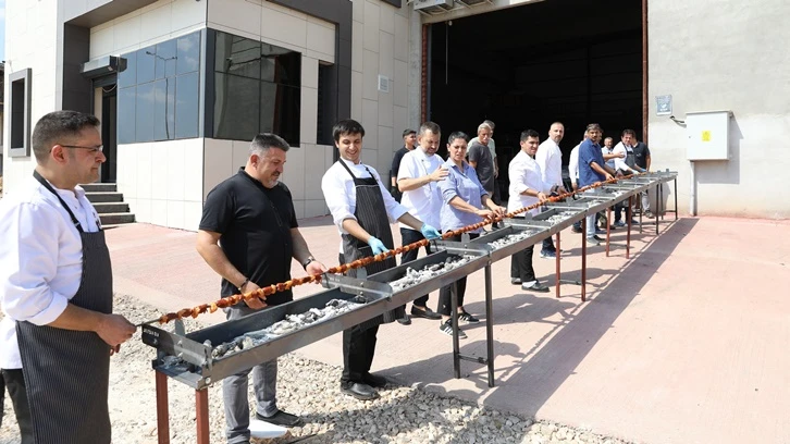 Galle Park’ta gerçekleştirilecek rekor denemesi için tüm hazırlıklar tamamlandı. 2,5 kilometre uzunluğunda kebap hazırlayarak Guinness Dünya Rekorları’na adını yazdırmayı hedefleyen ustalar, bu dev kebabı rekor denemesi sonrası etkinlik alanını dolduran ziyaretçilere ikram edecek.