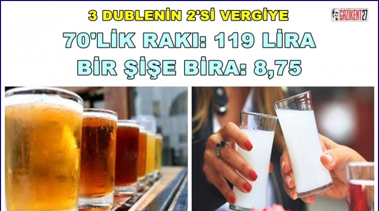 70’lik rakı 119, bira 8,75 lira