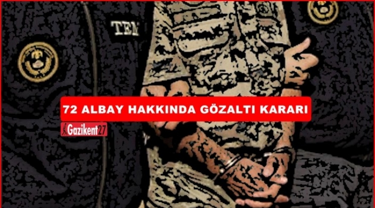 Ankara Cumhuriyet Başsavcılığı'nın yürüttüğü Kara Kuvvetleri Komutanlığı'ndaki FETÖ soruşturması kapsamında 25' i muvazzaf 72 albay hakkında gözaltı kararı verildi. Gözaltı işlemlerinin 14 ilde sürdüğü bildirildi.