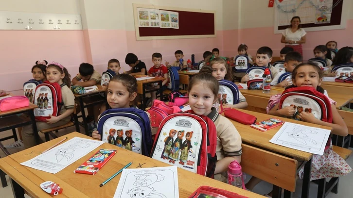 Gaziantep Büyükşehir Belediyesi Başkanı Fatma Şahin’in Gaziantep’te ilkokul 1’inci sınıfa başlayacak 75 bin öğrenciye hediyesi olan çanta ve kırtasiye malzemeleri, minikleri sıralarında karşıladı.