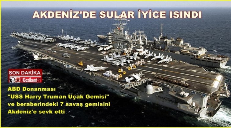 ABD Donanmasının "USS Harry Truman Uçak Gemisi" ve beraberindeki 7 savaş gemisini Akdeniz'e sevk ettiği bildirildi.