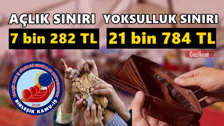 Birleşik Kamu-İş, son bir yılda açlık sınırının 3 bin 693 lira, gıda dışındaki ihtiyaçlar için yapılması gereken harcamanın ise 5 bin 685 lira arttığını belirtti.
