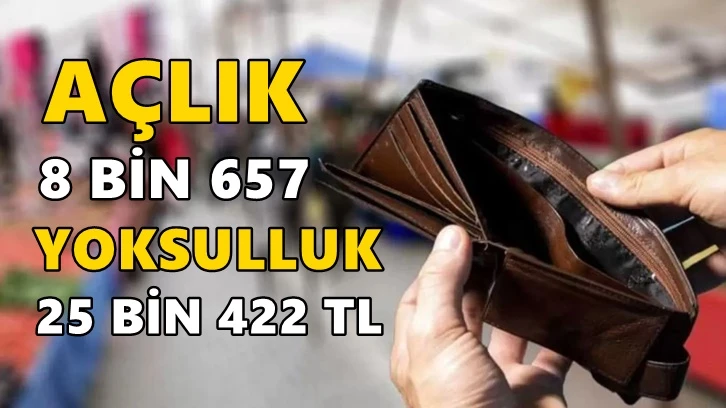 Birleşik Kamu İş'in kasım ayı Açlık-Yoksulluk Araştırması'na göre; dört kişilik bir ailenin açlık sınırı 8 bin 657, yoksulluk sınırı ise 25 bin 422 liraya çıktı.