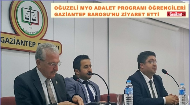 Ziyarette, Avukatlar Günü nedeniyle çiçek takdim edilen Gaziantep Barosu Başkanı Avukat İskender Kahraman da yapılan ziyaretten duyduğu memnuniyeti dile getirerek teşekkürlerini sundu. Ziyaret sonunda, Adalet Programı öğrencileri, stajyer avukatlarla birlikte Baro Konferans Salonunda Gaziantep Barosu avukatlarından Av. M. Haşim Mısır tarafından verilen “Savunma Hakkı ve Avukatlık Mesleği” konulu konferansa katıldı.