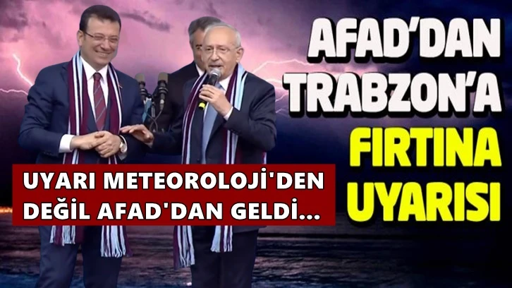 AFAD, Cumhurbaşkanı adayı Kılıçdaroğlu'nun Trabzon'da yapacağı miting öncesinde yurttaşlara, kuvvetli fırtına uyarısı gönderdi. Meteoroloji verilerine göre hava bulutlu olacak.