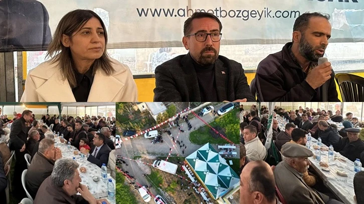 Adeta miting havasında gerçekleşen iftar öncesi kalabalığa hitap eden Ahmet Bozgeyik, "İftar davetemize katılan tüm hemşehrilerimize teşekkür ederim. Mübaek Ramazan ayının hayırlara vesile olmasını diliyorum. Tuttuğunuz oruçları Allah kabul eylesin. Ben hiçbir siyasi parti üyeliği tercihini dikkate almadan, hem Oğuzeli'nin geleceği ve büyümesi adına hem de bu kardeşinize sahip çıktığınız, destek olacağınıza inanıyorum. Hepinize desteklerinizden dolayı teşekkür ediyorum, Allah sizden razı olsun. İnşallah 31 Mart'ta Oğuzelimiz için herşey çok güzel olacak." diye konuştu.