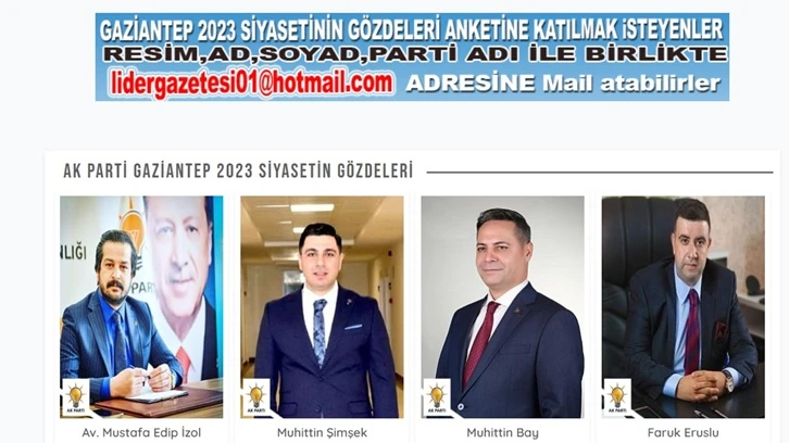 Yapılan Anketin analizi ise Gaziantep halkının artık Kontenjan aday istemedikleri gibi yeni yüzler yeni isimlerin önünün açılmasını istiyor. Ankette bütün partilere yer verilirken, Ak Parti’nin adaylarının daha çok oy alması gözlerden kaçmadı. Ak Parti’de öne çıkan isimler arasında Gençlik kollarının çeşitli kademelerinde görev almış Muhittin Şimşek ile Ak Parti İl Başkan Yardımcılığı görevinde bulunan Mustafa Edip İzol bulunuyor. 10 günlük anket sürecinde ilk sıralarda yer alan isimler olan Şimşek ve İzol, parti içinde en dikkat çeken siyasetçiler oldular.
