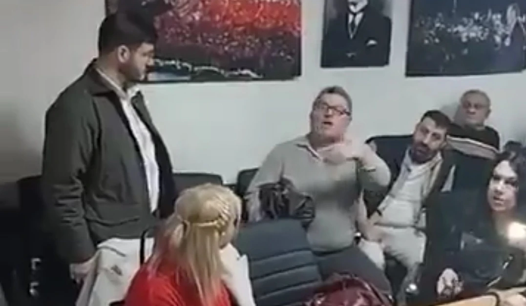 Özdemir masayı yumruklayıp sürahi ve mikrofon fırlatmaya çalıştı, görüntü alanları tehdit etti. Partililer araya girince toplantı sona erdi.