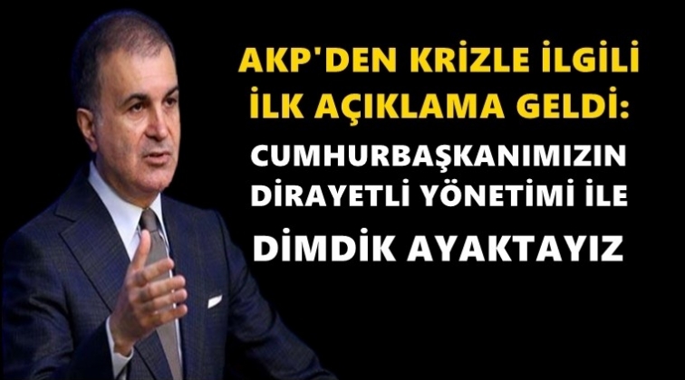 Piyasalardaki hareketliliğin ve dövizdeki yükselişin ardından AKP'den ilk açıklama geldi. AKP Sözcüsü Ömer Çelik "Hükümetimiz Cumhurbaşkanımızın dirayetli yönetimi ile dimdik ayaktadır. Her türlü kriz senaryosunu şimdiye kadar olduğu gibi bundan sonra da boşa çıkaracağız ve hedeflerimize yürüyeceğiz" ifadelerini kullandı.