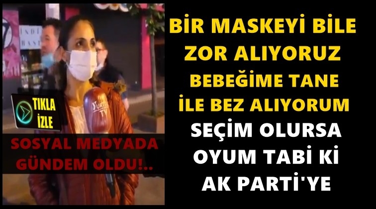 Yurttaş TV'ye konuşan kadın, "Bir maskeyi bile zor alıyoruz. Benim mesela bebeğim var, tane tane bez alıyorum. Çocuğuma ucuz bez arıyorum. Bunun ötesi var mı, yok" dedikten sonra seçim olursa oyunu AKP'ye vereceğini söylüyor.