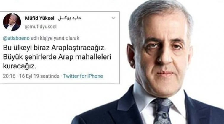 Daha önce Andımız'ı 'Bölücülük' olarak nitelendiren AKP'li yazar Müfid Yüksel, "Bu ülkeyi biz Araplaştıracağız. Büyükşehirlere Arap mahalleleri kuracağız" dedi.