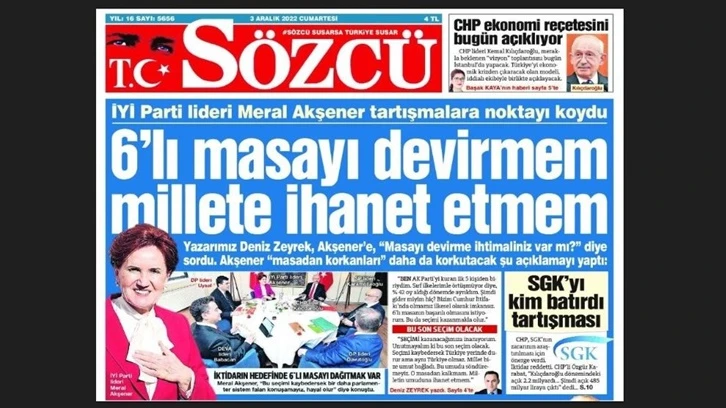Aynı gün SÖZCÜ yazarı Deniz Zeyrek, Meral Akşener’e “Masayı devirme ihtimaliniz var mı?” diye sordu. Akşener, masadan korkanları daha da korkutacak şu açıklamayı yaptı: