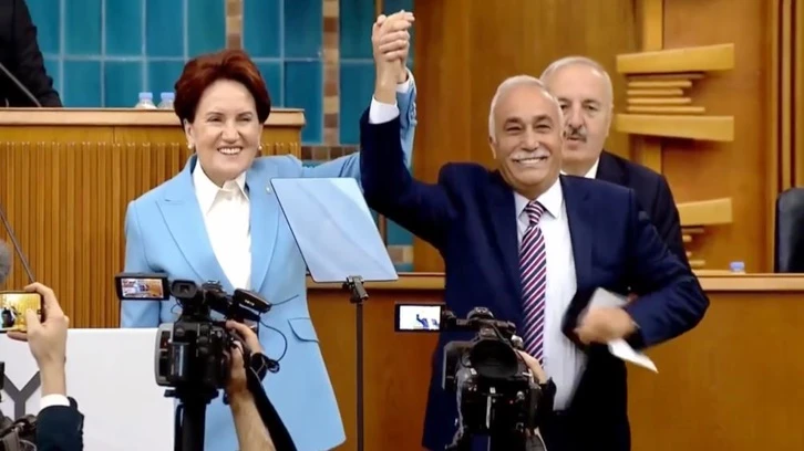 AKP'den ve vekillikten istifa eden Ahmet Eşref Fakıbaba, İYİ Parti lideri Meral Akşener konuşmasına başlamadan önce kürsüdeki yerini aldı.