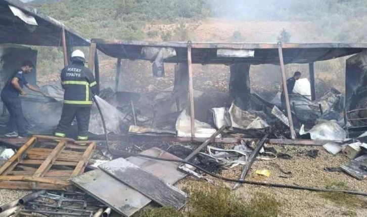 Hatay’da alevlere teslim olan inşaat işçilerinin kaldığı 2 konteyner kullanılmaz hale geldi.
