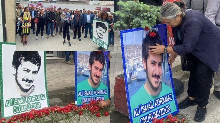 Konuşmaların ardından Ali İsmail Korkmaz’ın kaldırıma konulan fotoğrafının önüne karanfiller bırakıldı.