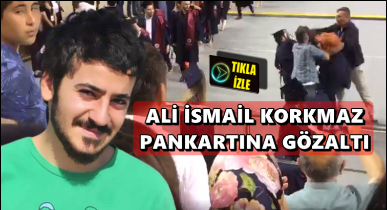 Anadolu Üniversitesi'nde düzenlenen mezuniyet töreninde Ali İsmail Korkmaz pankartı açmak isteyen öğrencilere polis müdahale ederken; öğrenciler gözaltına alındı.