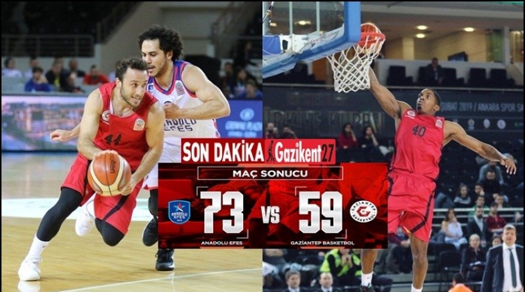 Ankara'da düzenlenen TBF Erkekler Türkiye Kupası Çeyrek Finali maçında Gaziantep Basketbol, Anadolu Efes'e 73-59 mağlup oldu.