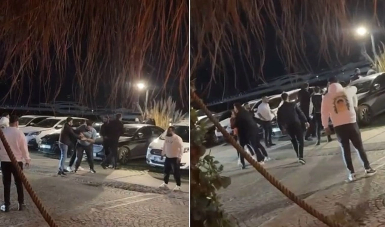 Beylikdüzü Marina'da iki grup arasında çıkan tartışma kısa sürede tekmeli, yumruklu kavgaya dönüştü. Bir kişinin silahla ateş ettiği kavgada yaralanan olmazken o anlar cep telefonu kamerasına yansıdı.